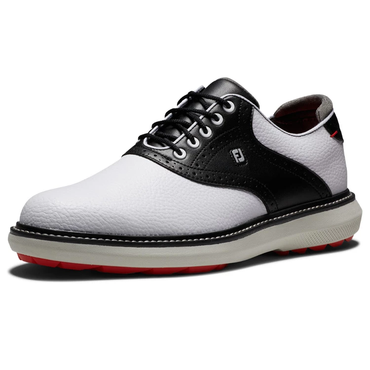 | FootJoy FJ Traditions Spikeless 57924 Golf Shoes Spikeless Comfort In A Modern Classic Style FootJoy FJ Traditions offer complete traction and can be easily maintained round after round. Lightweight comfort and super-cushioned foam deliver an incredibly flexible and comfortable ride. The super-cushioned foam underfoot will keep you comfortable and supported throughout the entire round, and built in achilles pad ensures a perfect no-slip fit. 100% waterproof, a full grain leather provides a soft and easy to clean upper with 1 year waterproof protection. The VersaTrax outsole is engineered with traction elements to create an outsole that is perfect for on course performance with wear-to-the course versatility. Clean and iconic, the FJ Traditions Golf Shoes offer the perfect blend of classic design with modern performance. |